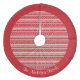 Jolie jupe d'arbre a un tricot rouge, blanc et vert motif en bandes, y compris les petits coeurs. La bordure extérieure est rouge et vous personnalisez avec votre nom dans un joli script blanc.