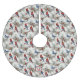 Cette jolie jupe d'arbre de Noël est ornée d'un motif délicieux composé d'oiseaux cardinaux rouges et de geais bleus perchés sur des branches d'aiguilles de pin. Votre monogramme se trouve au bas de l'avant, entouré d'une bannière à double doublure rouge et bleu assortie. Elégant et festif !
