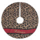 Une jupe élégante d'arbre avec une conception de poster de animal de léopard dans bronzage, brun et noir. Votre texte est montré en manuscrit coloré par or sur un arrière - plan de style de ruban de rouge cramoisi. La couleur de rayure peut être changée en cliquant sur la PERSONNALISER IL, EDIT, puis ARRIÈRE - PLAN.