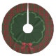 Un élégant plaid traditionnel et les vacances vont de pair pour une atmosphère de Noël à l'ancienne. Ici nous avons une jupe d'arbre de Noël faite dans le clan vert et rouge traditionnel motif de plaid Dunbar, avec des graphiques d'un cercle vert superposé avec saint autour des bords. Des graphismes d'un arc rouge, à l'avant de la jupe, complètent cette jupe d'arbre festive et chic.