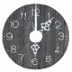 Motif en bois patiné gris foncé rustique avec une face à horloge vintage blanche.