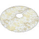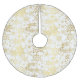 Cette jupe d'arbre de Noël est montrée dans un joli or et une conception de fête blanche d'impression de flocon de neige de vacances.