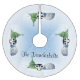 Un joli motif habillera votre arbre de vacances. Cette conception mignonne a un pingouin mignon de bande dessinée debout en dehors de son igloo dans la neige avec un arbre de Noël vers sa gauche. Il y a un endroit pour votre nom de famille ou monogramme ou le customise pour ajouter votre propre texte personnalisé.