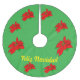 Jupe de Noël Poinsettia avec le libellé Feliz Navidad. Cette belle jupe d'arbre peut être exactement ce dont votre arbre de Noël a besoin. Cette jupe d'arbre est très colorée et peut apporter de la joie à votre exposition décorative.