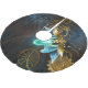 Luciole à vapeur avec ailes bleues transparentes et ampoule verte sur arrière - plan usé, marron, texturé. Style Steampunk.