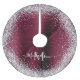 Cette jupe de Noël festive présente un arrière - plan en métal brossé bordeaux avec des bordures de parties scintillant en argent brillant. Ajoutez votre nom de famille et votre initiale pour une touche personnelle.