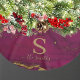 Jupe de Noël monogramme avec un arrière - plan en marbre bordeaux et élégants éclats d'or. Personnalisé avec le nom de famille et l'initiale.