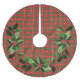 Jupe d'arbre de Noël avec Noël Plaid Irlandais Rouge et saisonnier saint et baies.