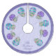 De beaux ornements de Noël ornent cette jupe d'arbre avec des étoiles blanches et un arrière - plan de lavande. Très élégant et sûr d'intensifier votre décoration de vacances cette année.