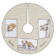 Cette jupe de Noël pour chiot chien est parfaite pour décorer le fond de l'arbre. Jupe d'arbre amusante avec trois photos d'animaux de compagnie et un nom. Le décor des arbres de vacances est donc parfait pour un propriétaire d'animal de compagnie. Insérez votre trois chien préféré ou toute autre photo d'animal de compagnie dans le modèle. Personnalisez la jupe avec le nom de l'animal ou effacez le nom. Belles rayures blanches sur un arrière - plan beige élégant.