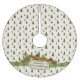 Les jolis pins avec la jupe d'arbre de ruban de Joyeux Noël est la manière parfaite à la finition de votre arbre de Noël et prépare le terrain pour vos cadeaux cette année et pour les années à venir. Un arrière - plan crème de couleur avec un motif des pins verts comporte un beau ruban de vert et d'or, Noël de lecture d'étiquette centrale Joyeux. L'étiquette est ornée avec des branches de pin, des cônes de pin et le feuille.