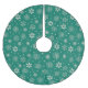 Des images de flocs de neige crémeux de tailles différentes et des motifs ornés sont contre un arrière - plan vert turquoise sur cette jupe de sapin de Noël élégante. Pas brillant ni fort...joli !