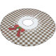 Un élégant plaid traditionnel et les vacances vont de pair pour une atmosphère de Noël à l'ancienne. Ici nous avons une jupe d'arbre de Noël fait dans le traditionnel motif en plaid Stewart vert, rouge et blanc, favorisé par le roi George. Des graphismes d'un cercle en dentelle blanche superposés avec des graphismes d'un joli arc rouge, à l'avant, complètent cette jupe d'arbre chic et festive.