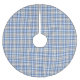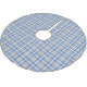 Cette jupe de sapin de Noël est ornée d'un motif couleur tartan (plaid) aux tons blanc, bleu et gris brunâtre (taupe).