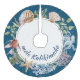 Magnifique thème tropical Jupe d'arbre de Noël avec arrière - plan blanc et couronne de thème côtier avec coquilles, étoiles de mer et plus. Copier dit mele Kalikimaka mais vous pouvez customiser ceci.