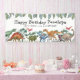 Entrez dans l'ère préhistorique avec notre bannière de soirée à thème Jurassique ! Dotée d'un arrière - plan blanc qui peut se transformer en n'importe quelle ombre de votre choix, notre bannière fusionne de façon unique le désert du feuillage vert jungle avec un adorable assortiment de dinosaures aquarelles. Pour lui donner une touche personnelle, notre bannière comporte également un modèle de texte de célébration anniversaire de enfant personnalisable, ce qui en fait un ajout amusant et mémorable à la journée spéciale de votre enfant.