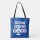 Jusqu'À Présent Ooh Si Bon Sac fourre-tout Heureux. L'art sac présente une police intérieure audacieuse avec un visage joyeux conçu comme faisant partie du mot "bien". Montrez que vous êtes des progrès positifs pour les autres avec ce joyeux So Far Ooh So Good sac fourre-tout. La couleur de l'arrière - plan peut être customisée à votre préférence. Fait un excellent cadeau pour la famille ou les amis. Merci pour le support et la visite de mon magasin - UniquelyDistinct. N'hésitez pas à transférer cette conception sur d'autres produits Zazzle.