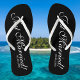 Just Married beach tongs flops for bride and groom / Mr and mrs couple. Ajoutez votre date de mariage. Nom personnalisé élégant flipflops pour les jeunes mariés et leur entourage. Faites vos propres sandales personnalisées pour mariée d'équipe, femme de ménage, femme d'honneur, fille de fleurs, mère de la mariée, mère du marié, équipe, invités, etc. De mignonnes chaussons d'été pour le mariage nautique ou sur le thème de la plage près de la mer. Aussi agréable que la fête de mariage côtier faveur pour les invités ou comme voyage chic présent pour les nouveaux mariés allant en lune de miel destination vacances. Créez un ensemble unique pour lui et elle. Style typographie script design modèle avec nom de famille ou nom monographique personnalisé lettre initiale. Créez votre propre paire de flipflops de classe pour les demoiselles d'honneur, les groomsmen et les invités. Des pantoufles souvenirs amusantes sont mises en place pour l'événement d'été en juillet, août etc. Couleur bracelet blanc, noir, rose ou bleu. Changez la quantité pour obtenir un prix d'escompte bon marché. Couleur arrière - plan personnalisable.