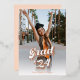 Un faire-part de graduation avec une photo personnalisée et une feuille d'or rose imprimé style rétro typographie est une façon unique et élégante d'annoncer votre graduation à vos amis et votre famille. La photo personnalisée est une touche spéciale qui ajoute un élément personnel et sentimental à la conception, tandis que l'impression de feuille d'or rose ajoute une touche de glamour et de sophistication.