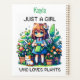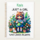 Mignonne, art de planificateur personnalisé pour toute fille qui aime les plantes. Graphique mignon en 8 bits dans un style de jeu vidéo en pixels. Une fille tenant un arrosage peut être entourée de beaucoup de plantes.