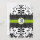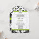 Vintage Moderne Noir et Blanc Motifs de Damas Floral avec Apple Green Trim Wedding Invitations. Parfait pour Rococo Baroque, Renaissance médiévale, Art Déco Art Nouveau, Roaring 20s Gatsby, Mariages victoriens ou Elégant Farmhouse Mariage lieux thématiques.