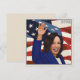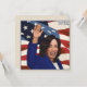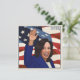 "Portrait de la candidate à la présidentielle Kamala Harris avec les étoiles et les rayures et le vent derrière elle.