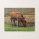 Une photo d'une vache du Kansas Country avec une clôture de Barbwire, avec de l'herbe verte. C'est clair et coloré qui est sur un PUZZLE.