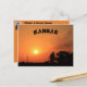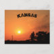 Une photo d'un Kansas Orange Sunset qui est lumineux et coloré avec Power lines et trois Silhouettes. C'est au nord de Hutchinson Kansas dans le pays. C'est sur une carte postale.