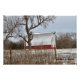 Une photo d'une grange rousse avec de la neige et de l'arbre, et du ciel bleu. C'est au nord de Hutchinson Kansas USA dans le pays.C'est lumineux et coloré. C'est un agrandissement de l'affiche et de la photo.