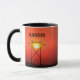 Une photo d'un Coucher de soleil rouge du Kansas avec une silhouette de ligne électrique avec des poteaux. Avec un anneau jaune autour du Soleil qui est au nord-ouest de Nickerson Kansas USA sur un MUG CAFÉ.