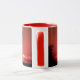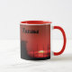Une photo d'un Kansas RED SUNSET qui est lumineux et coloré avec Power Lines et silhouettes d'arbre. Au sud de Sterling Kansas. C'est sur un MUG CAFÉ.