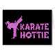 Karaté Hottie. Silhouette de fille avec la queue de cheval exécutant le coup-de-pied de karaté avec le karaté Hottie des textes. Perfectionnez pour les artistes martiaux féminins.