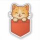 Cet adorable autocollant découpé en dés comporte un chaton tabby orange souriant qui sort d'une poche rouge vif. Avec ses grands yeux heureux et son charme de dessin animé, ce mignon chat est parfait pour décorer des ordinateurs portables, des journaux, des cabines téléphoniques ou des planificateurs. Un must pour les amoureux de les chats et les amateurs de kawaii !