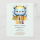 Amusant 1er Anniversaire invitation à la fête thématique avec un thème mignon. Il y a du texte modèle des deux côtés pour que vous puissiez ajouter tous vos détails, y compris rsvp, registre de cadeaux, code vestimentaire et plus encore.