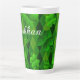 Tasse en latte à thème irlandais avec place pour un nom en écriture script. Jacquard vert motif et 4 feuilles de trèfle design et nom en blanc.