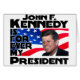 "John F. Kennedy est pour toujours mon président" dans un design audacieux et patriotique, avec le portrait du président soutenu par le drapeau américain.