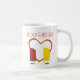 Une tasse avec deux paquets de condiment souriants. Les personnages de ketchup et de moutarde se sourient devant un coeur rouge et jaune. Les mots peuvent être customisés.