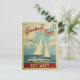 Ce voeu de Key West Florida design de voyage nautique vintage comprend un bateau naviguant sur l'eau avec des mouettes et un ciel bleu rempli de somptueux nuages blancs bouffants.