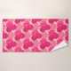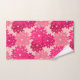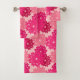 Serviette sertie dans une prise moderne sur un imprimé kimono floral japonais traditionnel - fleurs stylisées dans les tons rose corail et bordeaux sur un arrière - plan rose corail pastel