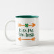 Embrasse-moi Je suis Irlandais : Drôle café personnalisé à deux tons. 15 oz ou 11 oz d'options disponibles en 10 couleurs et styles différents. Tasse en céramique blanche. "baisez-moi, je suis irlandais" imprimé graphique à la lettre avec du trèfle chanceux et des flèches de couleur orange. Idée cadeau de Noël humour irlandais. Toutes les couleurs irlandaises vert, blanc et d orange montrées dans le design.