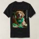This adorable and festive image features a happy golden dog wearing a bright green bandana that reads “Kiss Me, I’m Irish…”, surrounded by shamrock-shaped cookies and green-themed treats. Perfectly capturing the playful spirit of St. Patrick’s Day, this cheerful pup brings together charm, humor, and holiday flair
