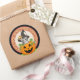 L'adorable autocollant d'Halloween partiellement généré par l'IA représente un adorable chaton portant un casquette de sorcière assis dans un citrouille souriant, à l'intérieur d'un cercle complexe. Utilisez ces autocollants sur les faveurs de fête, les cartes, et plus encore! Disponible en deux tailles différentes.