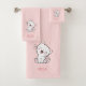 Chat kitty mignon et nom du texte sur l'ensemble de serviettes de bain rose clair.