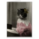 Chatte chatte habillée en lin rose et robe en dentelle blanche avec mortier gradué sur sa tête