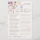 The game text is displayed in a mix of elegant handwritten script and clean serif fonts, making it both stylish and easy to read. Fully customizable, you can edit the questions, fonts, and colors to perfectly match your bridal shower theme. This activity adds a sweet and playful touch to celebrating the bride-to-be.