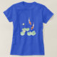 Un tee-shirt bleu féminin avec un tableau d'aquarelle zen idyllique de deux koi dans un étang de koi avec nénuphars blancs et nénuphars. La couleur des T-shirts peut être changée à votre goût.