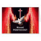 Bienheureuse Pentecôte, carte de voeux papier. Illustration numérique d'une colombe blanche volant vers le haut vers une croix rouge. Le feu et la lumière symbolisant l'esprit de Dieu se remplissent sur les côtés de l'image. Copyright © Shoaff Ballanger Studios, 2023.