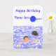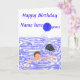 Une natation de garçon et une otarie tenant un ballon avec l'âge là-dessus. Ajoutez l'âge et le nom à l'avant, et les noms et n'importe quel message supplémentaire à l'intérieur.