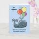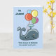 Here's a cute kid's birthday card that you can personalize. Objets fonctionnels a cartoon image of a blue whale with brightly colored birthday balloons on the front. "Salut Jason ! This whale is bring ing balloons your way..." On the inside is the solitaire balloon image, with the words, "... to say we hope you have a very Happy Birthday !" Easily customized to say anything you'd like