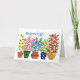 A Get Well Soon card with the greeting in Dutch and a row of flowerpots of colourful flowers, from a handpainted paper collage by Judy Adamson. The inside is left blank for your own and please contact me through my store if you'd like a different front cover greeting.
